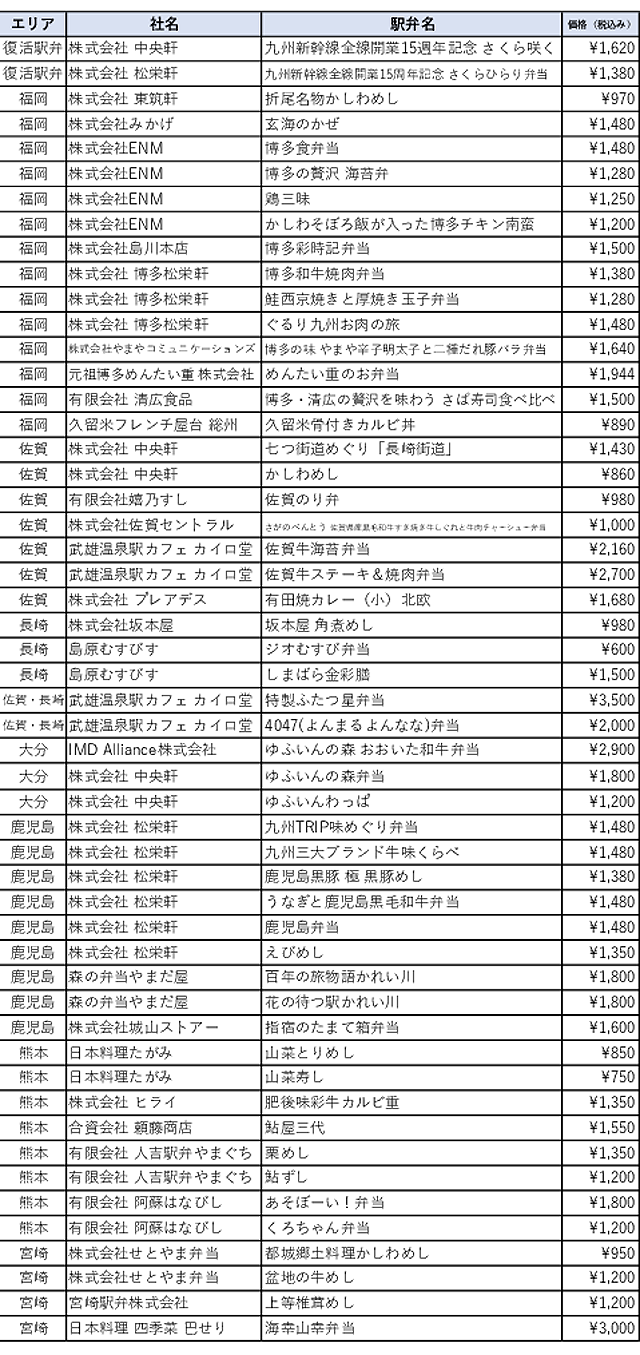 九州の豊かな土地で育まれた食材を使い、手間ひまをかけ、たっぷりの愛情で作られた九州各地の駅弁たち。
