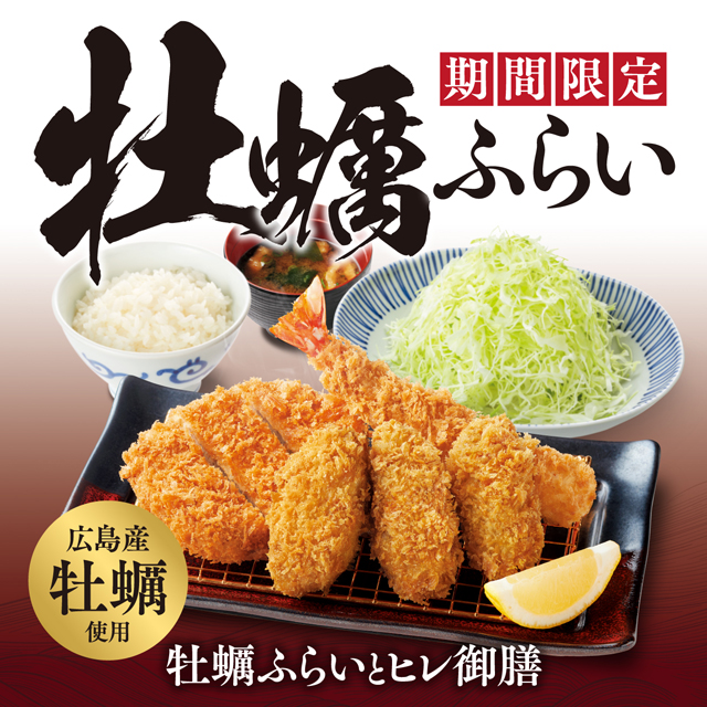 昨年大人気の季節限定メニュー「牡蠣ふらい」が今年も登場。旨味が濃厚で雑味が少なく、上品な味わいの広島産牡蠣を使用。