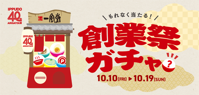 アプリ内で配布されたガチャ券を引くとクーポンが当たる「創業祭ガチャ」を開催。2025年10月19日(日)までに一風堂公式アプリをダウンロードし会員登録した方にガチャ券を配布。