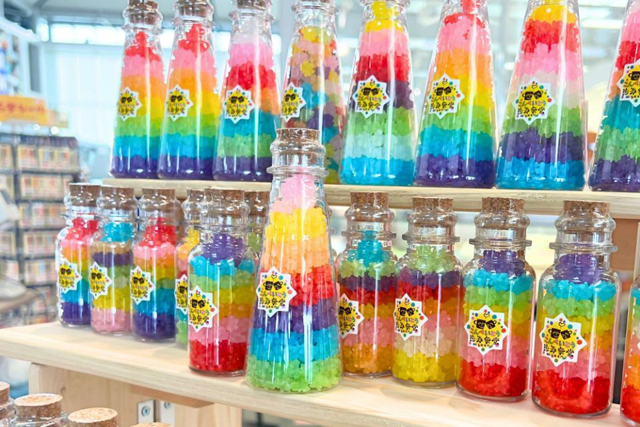 手作業で製造する”虹色金平糖”が主力商品です。色ごとに味が違い、フルーツ系やブルーベリー、日本酒、塩、ビーツなど幅広い味が特徴!夏限定のバニラアイスとトッピング金平糖のセット販売も用意しています。