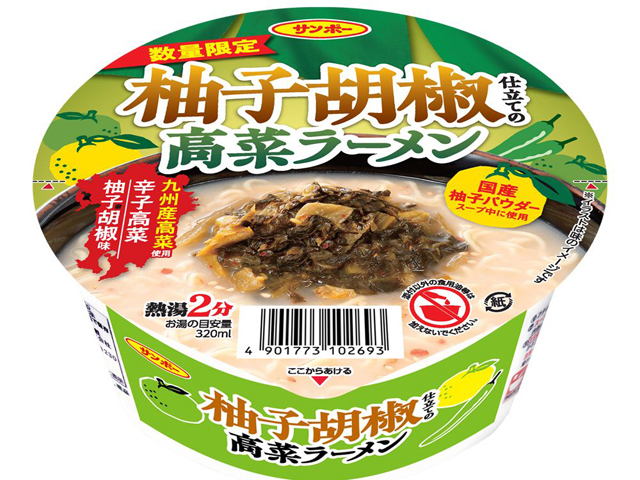 サンポー食品株式会社(本社:佐賀県)は、2025年10月13日(月)に全国で「柚子胡椒仕立ての高菜ラーメン」を新発売します。