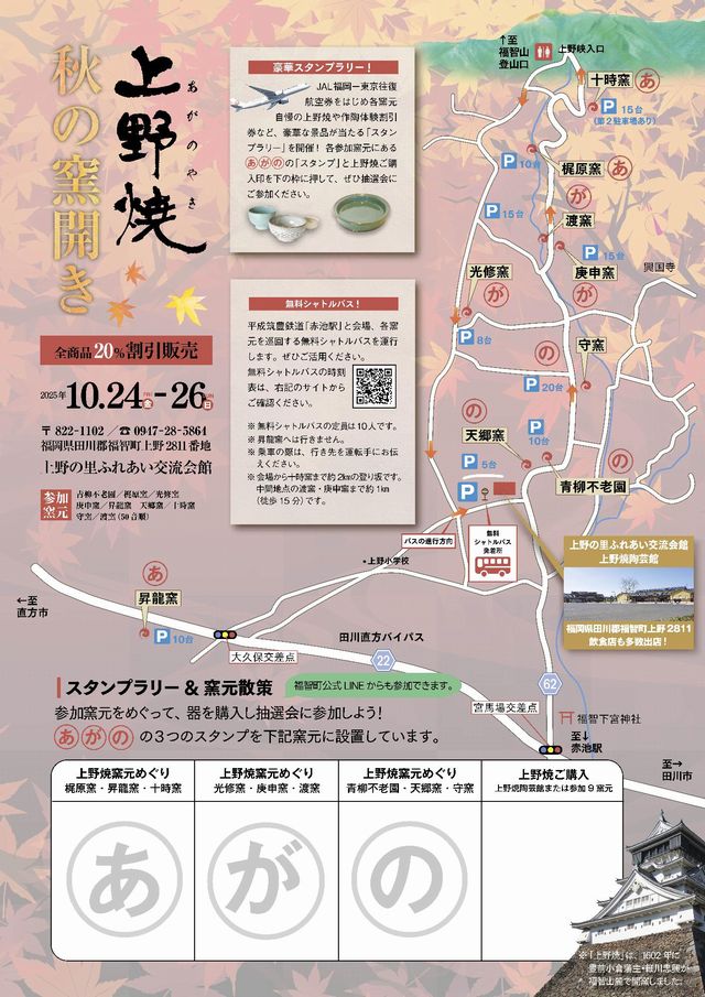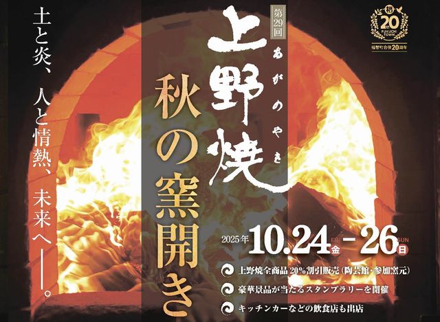 2025年10月24日(金)~10月26日(日)10:00~17:00、上野の里ふれあい交流会館(田川郡福智町上野2811)および参加窯元にて、「第29回 上野焼秋の窯開き」が開催されます。
