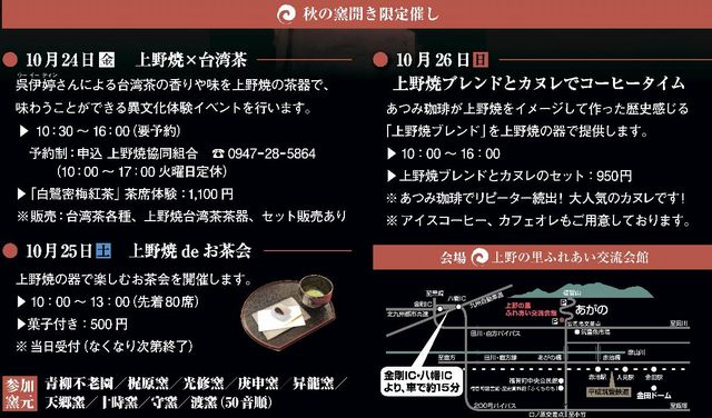 10月25日(土曜日) 上野焼deお茶会(先着80名)