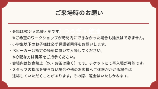 ※各回90分入れ替え制。受付は入場開始時刻の30分前から。