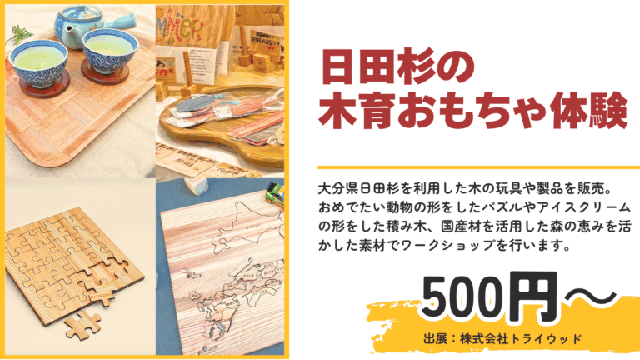 てづくりおもちゃの販売や、工作体験が行える他、良質な木のおもちゃで遊べる「ミニ木育キャラバン」も会場内で同時開催します。