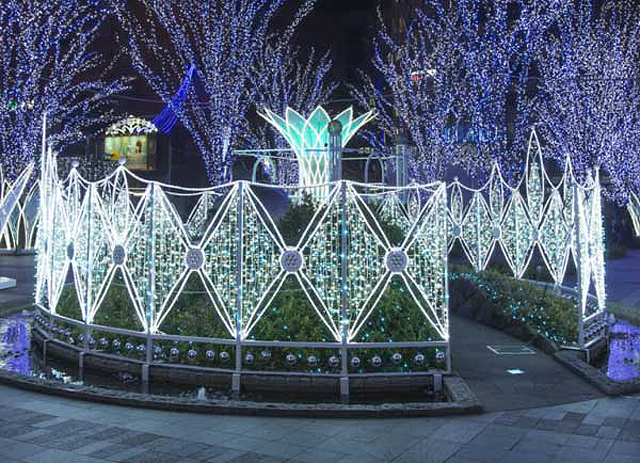 大屋根に星空をイメージしたイルミネーション、名付けてスターダストウェーブ。星空の一粒一粒の光が光の街に温かい光を降り注ぎます。