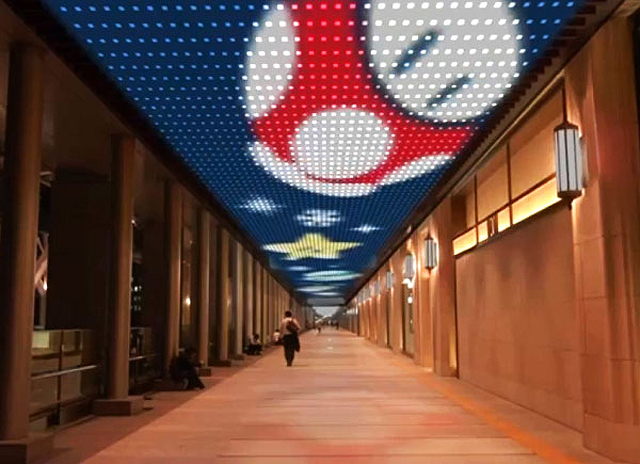 幅約5m、全長約70mのLEDスクリーン。ホリデーデザインのスーパーマリオのキャラクターやアイテムたちが賑やかに動きまわる演出が新たに加わります。