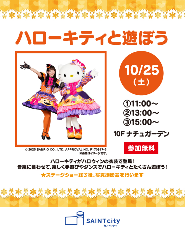 2025年10月25日(土)~10月26日(日)セントシティ(北九州市小倉北区京町3-1-1)10階ナチュガーデンにて、「サンリオキャラクターショー」が開催されます。参加無料。