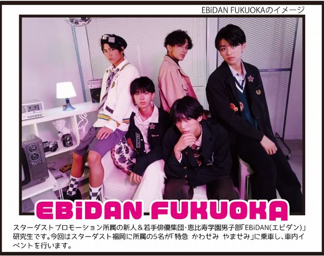 ・スターダストプロモーション所属のEBiDAN FUKUOKA「佐多伊徳」さん、「希望」さん、「松下新史」さん、「田中隆之介」さん、「後藤陽向」さんがゲストとして乗車し一緒に旅をします。
