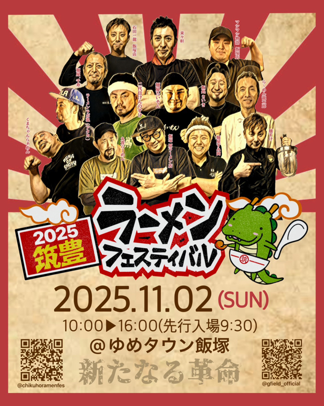 2025年11月2日(日)ゆめタウン飯塚(飯塚市菰田西3丁目6番1号)屋外特設会場にて「筑豊ラーメンフェスティバル2024 〜新たなる革命〜」が開催されます。