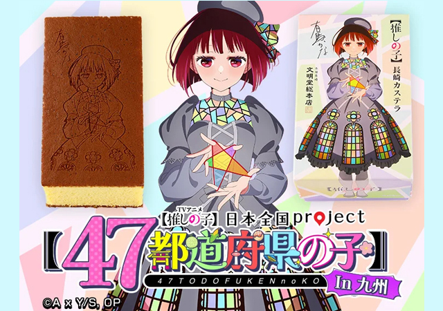 カステラの文明堂総本店が、アニメ【推しの子】の日本全国プロジェクト「47都道府県の子」とのコラボが決定。文明堂総本店自慢のカステラに、焼き印で有馬かなさんのデザインを描いております。