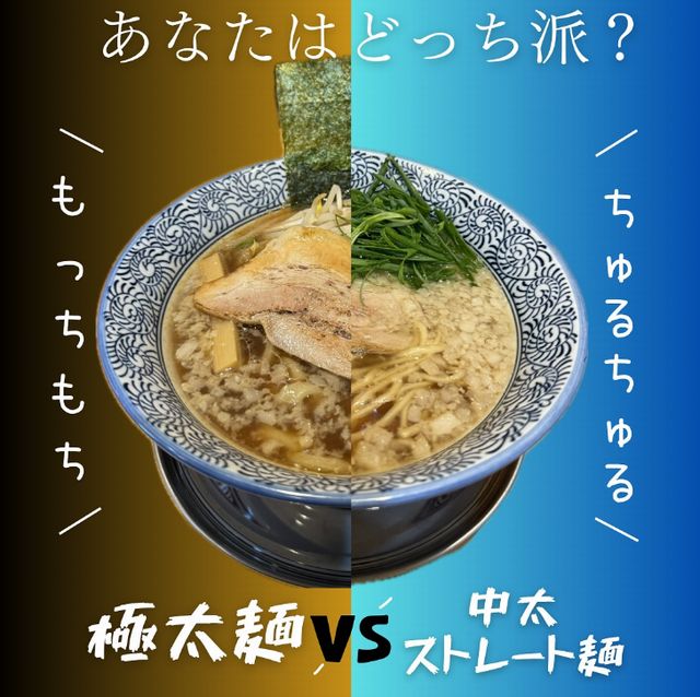 背脂×煮干し=こってりかと思いきや、優しくてスープでごくごく飲めるタイプ。麺は中太ストレート or 極太手揉みの2種類から選べます。