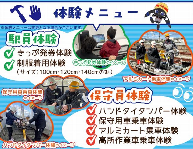 ・お子さま連れ限定の特別企画!普段は絶対に入ることのできない、JR 九州グループの実習施設である遠賀川施設実習センターで、鉄道に関するお仕事体験イベントを開催!