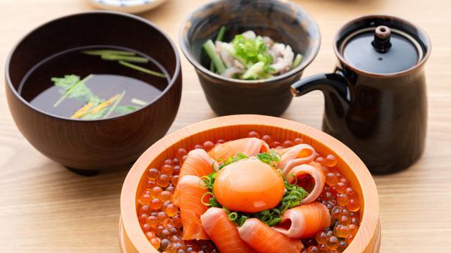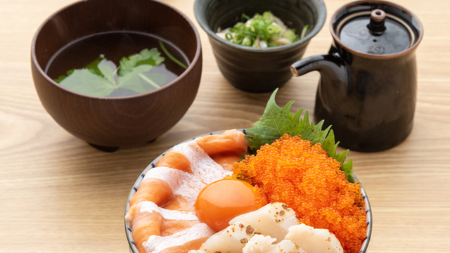 対馬産本マグロは、口の中でとろっと広がる豊かな食感と脂の甘さが魅力です。おすすめは「特上本まぐろ丼」。赤身、中トロ、大トロを贅沢に味わえる、コスパも良い逸品です。