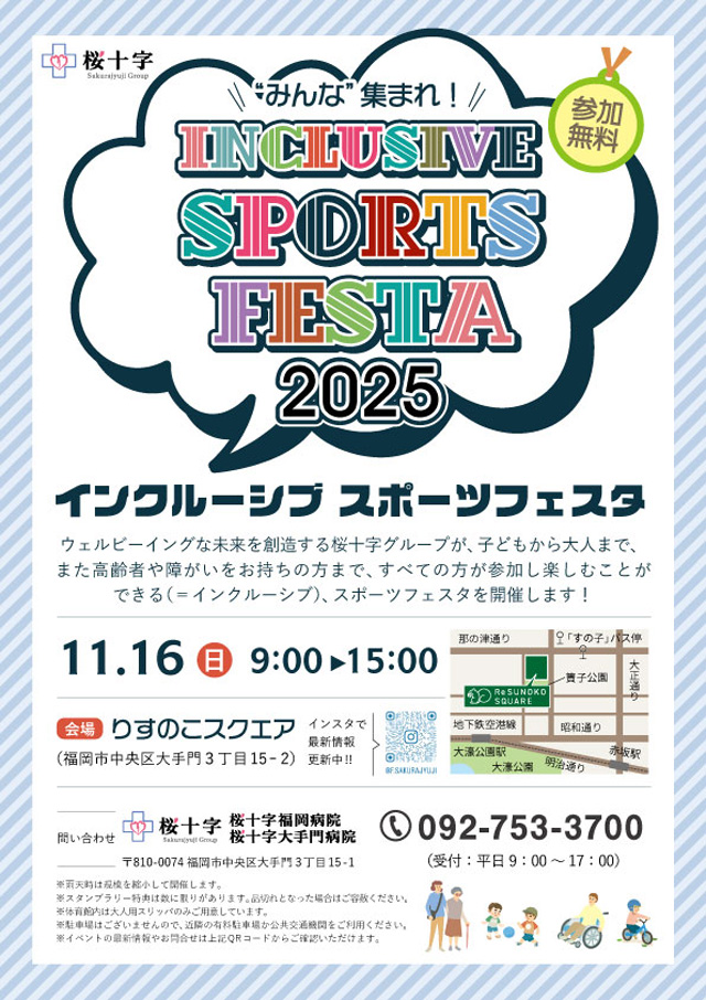 2025年11月16日(日)福岡市中央区のりすのこスクエアにて、ウェルビーイングな未来を創造する桜十字グループが、すべての方が参加し楽しむことができる(=インクルーシブ)スポーツフェスタを開催します。