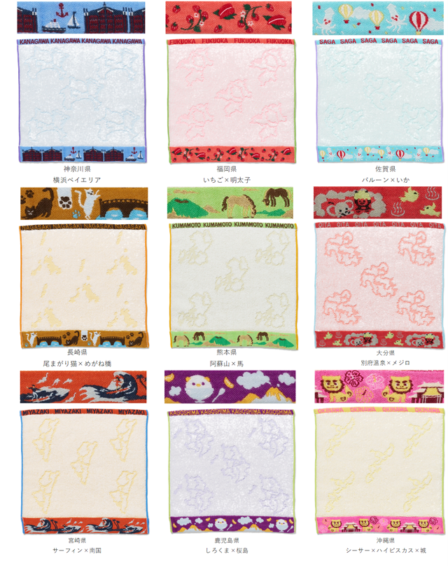 株式会社ゼンリン(本社:北九州市)は、地図がデザインされた文具や雑貨を販売するブランド「Map Design GALLERY」より、47都道府県のシルエットと名産品や名所をデザインした新商品「ジャカード織タオルハンカチ」の関東・九州沖縄エリア販売開始。