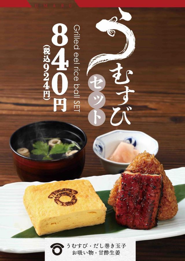 店内でふっくらと焼き上げたうまる自慢の鰻を手軽に持ち運びができるおむすびにしました。ちょっと小腹がすいた時に、ご家族やお友達へのお土産に、ちょうどよいサイズです。