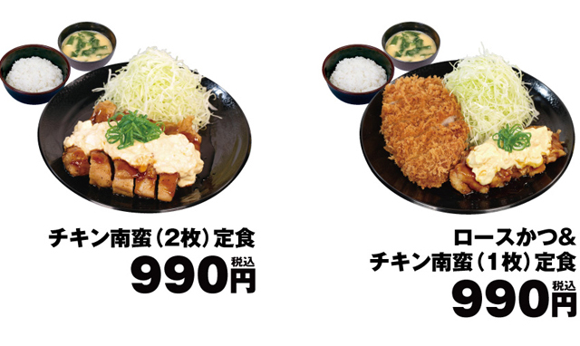 チキン南蛮を堪能できる定食に加えて、松のや自慢の「ロースかつ」がプラスされた盛合せ定食も販売します。ロースかつもチキン南蛮も一緒に楽しめる欲張りメニューです。