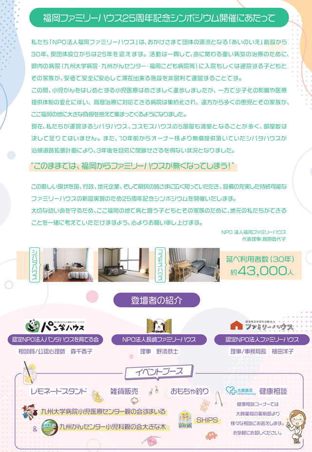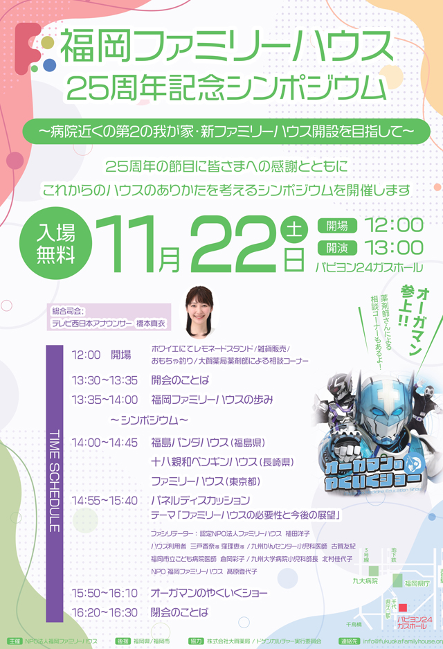 2025年11月22日(土)パピヨン24 ガスホール(福岡市博多区千代1丁目17-1)大賀薬局 人気の体験イベント × 福岡ファミリーハウス25周年記念シンポジウム 同時開催!