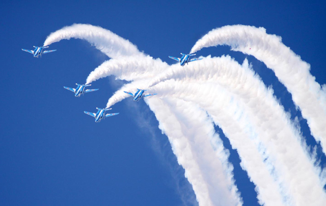 ブルーインパルス、T-4、U-125A、UH-60J、F-15J、F-2、陸自OH-1、海保ビーチ350およびウイスキーパパ(エクストラEA300)競技曲技飛行