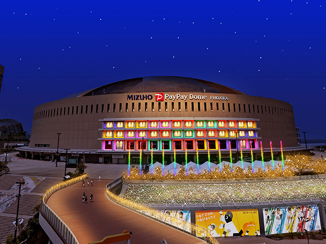 さらに、みずほPayPayドーム正面の花文字エリアにもイルミネーションを拡大。ドーム全体を包み込むように、色とりどりの光が輝きます。ドームを1周しながら楽しめるフォトスポットも多数登場。冬ならではの幻想的な光の世界を体感してください。