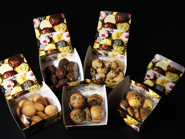 RUMBLE CRUMBLEを代表する直径8-9cm、厚み2cmの大きなニューヨークスタイルクッキーの人気TOP3(チョコチップ、ホワイトマカダミア、アールグレイ)のセットです。