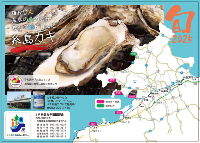 福吉、深江、加布里、船越、岐志、牡蠣小屋(焼きカキ店舗)が出店(野北は販売のみ)。漁港内においても店舗によってオープン日が異なりますので、詳細は各店のホームページで確認ください。