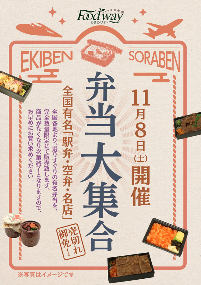 全国から約30種類の有名駅弁が「フードウェイ トリアス店」(糟屋郡久山町山田1111)に大集合!2025年11月8日(土)「全国有名駅弁・空弁フェア」が開催されます。