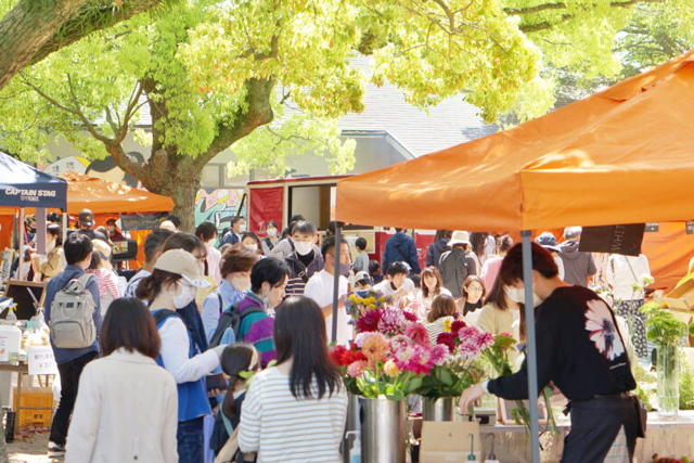 「スイーツコーンの焼きとうもろこし」「能古島の季節野菜のガレット」「豊作和牛のハンバーガー」など、できたてのフードで秋の野外ランチを!お子さまも楽しめます!