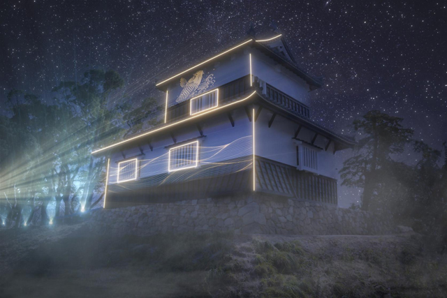 今年3月に復元されたばかりの潮見櫓に、レーザーとプロジェクションマッピングによる光と音のシンクロ演出で、象徴的なショーを展開します。