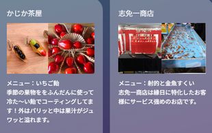 古今の食と文化が入り混じる屋台街。日本ならではの食や、人気の食べ歩きグルメまであり、夜の宴を彩ります。射的などの体験型の屋台も用意しております。