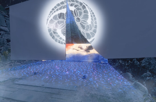 お堀から本丸へと続く道が灯篭やプロジェクションマッピングなどで彩られます。デジタル技術によってこの地にあった「歴史」の記憶を呼び覚ます、これまでにない光の世界を楽しめます。