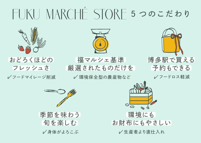 FUKU MARCHE STORE とは、福マルシェがセレクトした旬な食材をお届けするポップアップストア。3日間限定で博多駅にてオープンします。