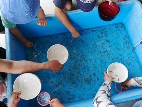 金魚すくいやザリガニ釣りなどが楽しめる!※縁日は有料です。