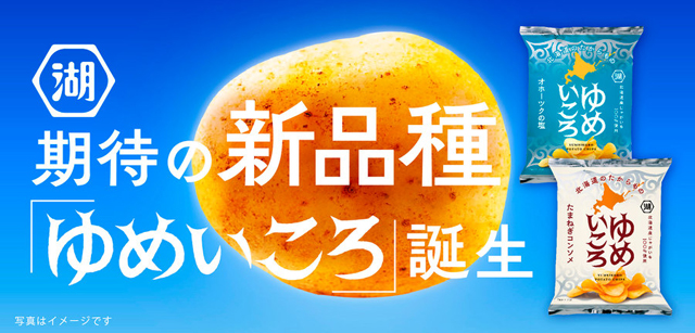 “ゆめいころ” は、男爵薯よりややでんぷん価が高く、しっとりとした食感とあっさりとした風味が特長。フレーバーは、”北海道を味わう” をテーマに、噛むほどにじゃがいもの味が引き立つ「オホーツクの塩」と「たまねぎコンソメ」の2種類を用意。