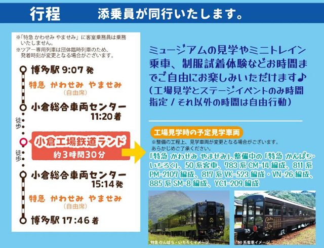 ツアー名:博多駅発着「特急 かわせみ やませみ」特別運行 小倉工場鉄道ランド特別ツアー