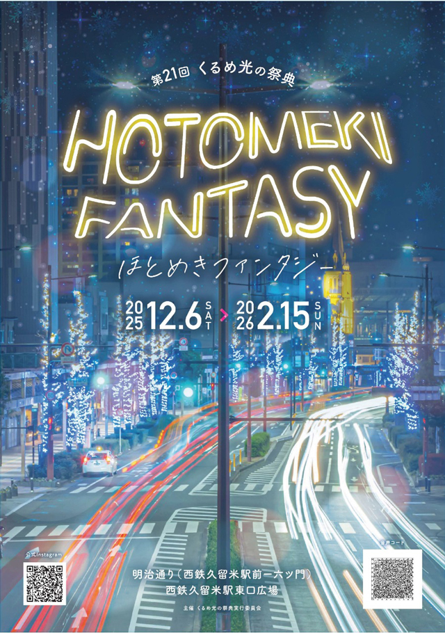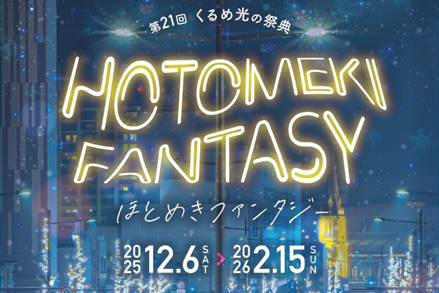 2025年12月6日(土)~2026年2月15日(日)西鉄久留米駅東口広場・明治通り他にて、第21回くるめ光の祭典「ほとめきファンタジー」が開催されます。点灯時間は17:00~24:00。