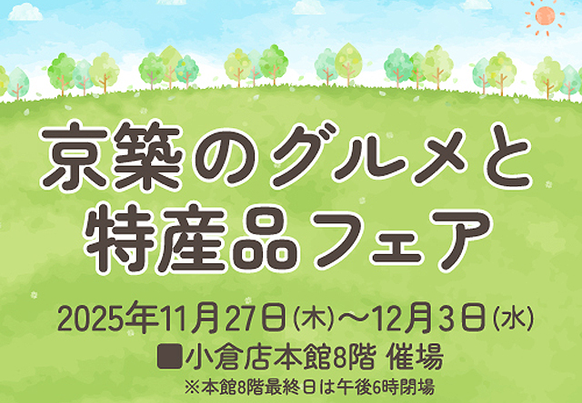 2025年11月27日(木)~12月3日(水)10:00~19:00(最終日は18:00閉場)、小倉井筒屋 本館8階 催場(北九州市小倉北区船場町1-1)にて「京築のグルメと特産品フェア」が開催されます。