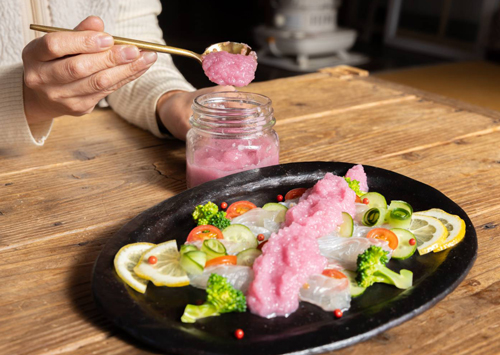 奈良漬サロン安倍と東筑紫学園高等学校 食物文化科とコラボし“Mottainai精神”から生まれたサステナブルな新商品酒粕を使った「酒粕ドレッシング」「酒粕ジェラート」を共同開発いたしました。「奈良漬の酒粕をアップサイクルした新商品」という生徒たちの発想で生まれました。