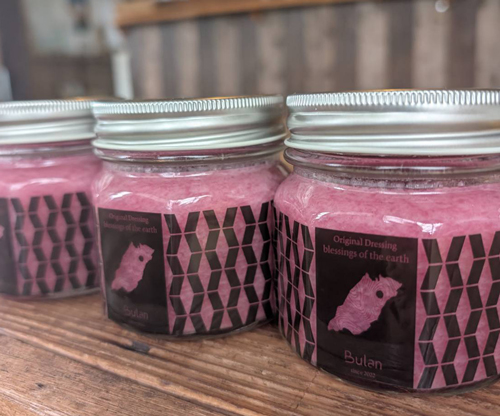 Bulan 月の台所は豊前市の豊かな地にあります。春は花が、夏には虫の音、秋には色づく花、冬は静かな陽だまり。そんな場所にある古民家をリノベーションしてできたお店です。「おひるごはん」のパフェサラダのドレッシングをご家庭の食卓にも。新鮮な野菜を使い、甘酢、菜種油、塩糀だけで仕上げた素材本来の甘みとまろやかな酸味。心にも身体にも優しいドレッシングひとさじでちょっと嬉しく。そんな想いを一瓶に込めてお届けします。
