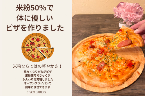 体調に気を使う方にも優しい米粉50%でピザをつくりました。