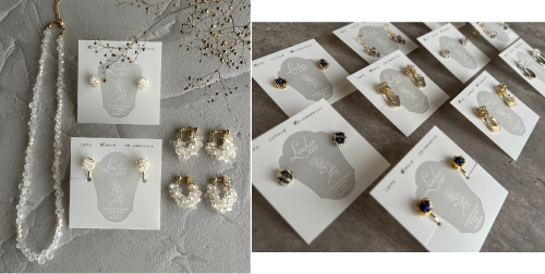 「さりげないのに印象的」そんな大人の女性にぴったりのアクセサリーを、一つひとつ心を込めて制作しています。毎日のコーディネートに彩りを。金具はアレルギー対応素材を使用しており、敏感肌の方にも安心です。