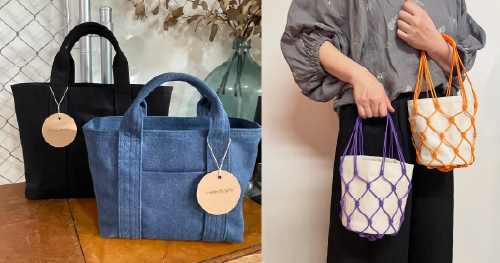 8号帆布から11号帆布までのトートバックや布小物が並びます。日常使いしやすい大きさで、シンプルなデザインに仕上げています。
