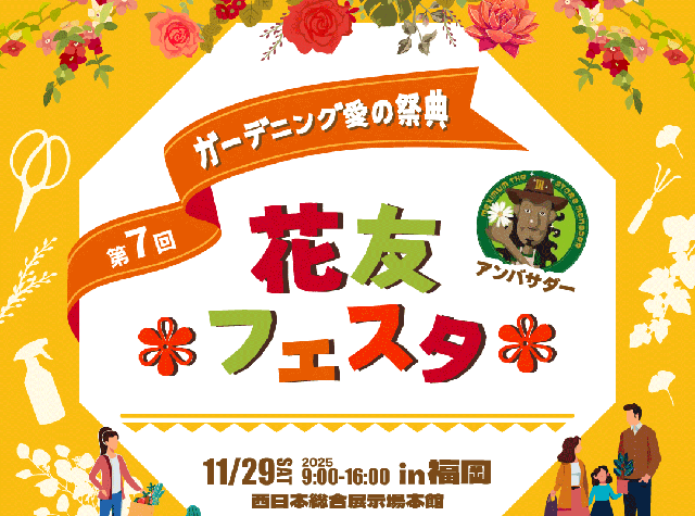 2025年11月29日(土)9:00~16:00、西日本総合展示場(北九州市小倉北区浅野3-8-1)にて「第7回 ガーデニング愛の祭典 花友フェスタ」が開催されます。