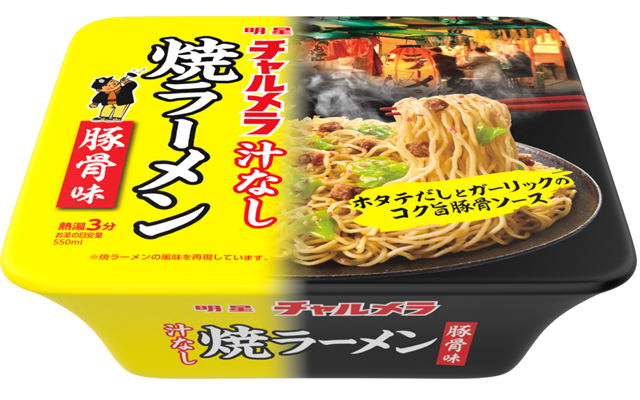 明星食品株式会社は、カップめん「明星 チャルメラ 汁なし 豚骨焼ラーメン」を、2025年11月17日(月)に全国で新発売します。ホタテだしとガーリックが効いたコク旨豚骨ソースが細めの麺に絡み、ダイレクトにおいしさを感じられる汁なし焼ラーメン。