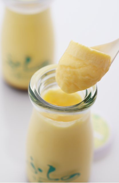 放牧牛乳のおいしさを際立たせるため、カラメルソースは敢えて付けず、牛乳と卵でつくる真っ白なミルクプリンです。