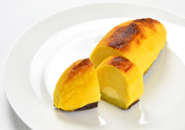 焼芋から作り上げたしっとり食感の生地を、カスタードクリームと共にさつま芋の皮の上に職人が盛り付け、焼き上げました。大きな見た目と、バターの豊かな香りが食欲をそそります。切り分けてお召し上がりください