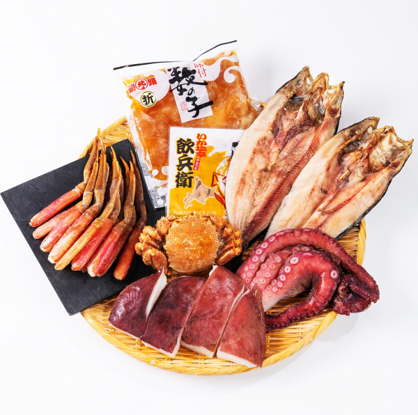 北海道展でおなじみのとてもお買い得な海産物の詰め合わせ。年末のこの機会にぜひお買い求めください!【内容】ズワイ蟹ハーフカット350g、タラバ蟹カット300g、鮭スモーク100g真ほっけ1枚、いか塩辛150g、さんま甘露煮ピリ辛180g、いか一夜干し1枚