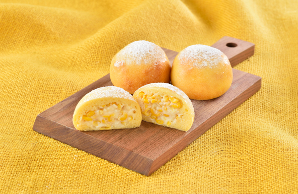 コーンパンの生地は北海道産小麦を100%使用し、生地にもコーンピューレを配合し香り豊かに仕上げています。フィリングのコーンはとっても甘い【十勝スーパースイートコーン】を使用。会場で焼き上げたホカホカもちもちのコーンパンをお見逃しなく!
