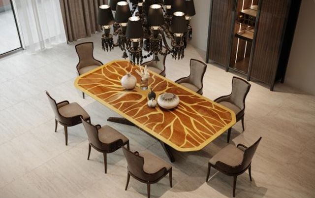 広島県府中市で古くから桐箪笥や高級和家具を生産してきた「松創」。ダイニングテーブル「大樹」の脚は大木の幹を、天板は広がる枝を表現しています。バーズアイメープルとニレコブをそれぞれくりぬき隙間なくはめ込んでいます。独特の光沢と力強さは、まさに自然が創り出した芸術といえるでしょう。